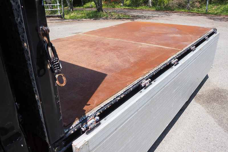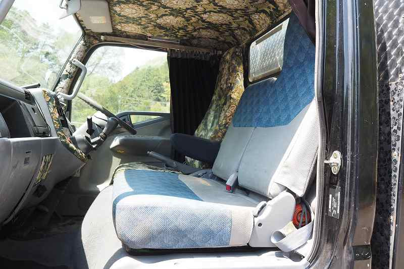 ★デコトラ!! ★マニワリ!!Wマフラー!! ★造りボディ!! ★内装金華山張り!! ★シャシ・燃料タンク赤ラメ塗装!! ★準中型(5t限定)免許対応!! ★煤焼きなし ★実走行 ★生エンジン ★4210cc ★3人乗り ★ミッション 5速マニュアル ★積載2000kg(抹消前) ★標準ショート ★10尺ボディ ★アルミブロック平ボディ外装AUS★荷台内寸(約)長さ308cm×幅154cm×アオリ高60cm ★床面:鉄板張り ★鳥居(キャブ側) ウロコステン・花柄ステン張り ★メッキホイールライナー ★ETC