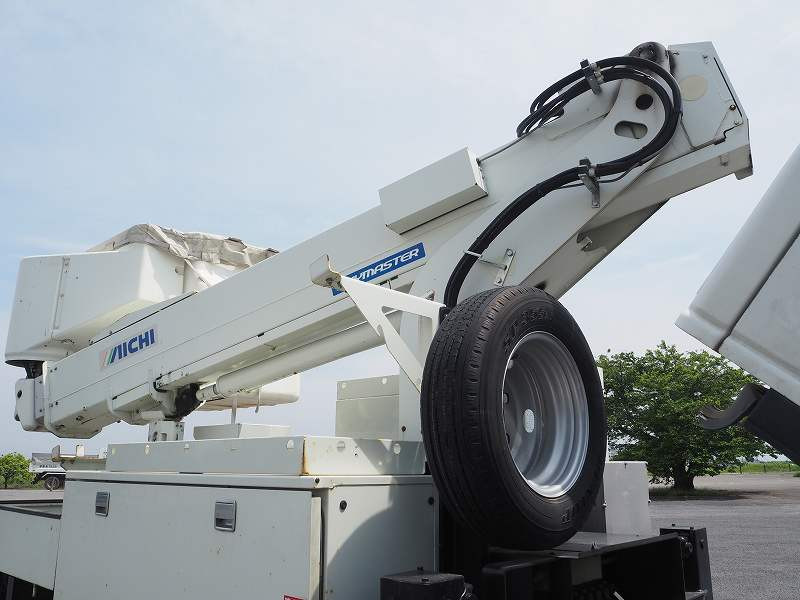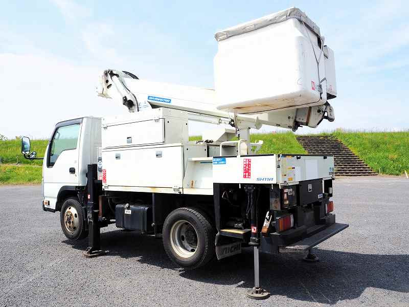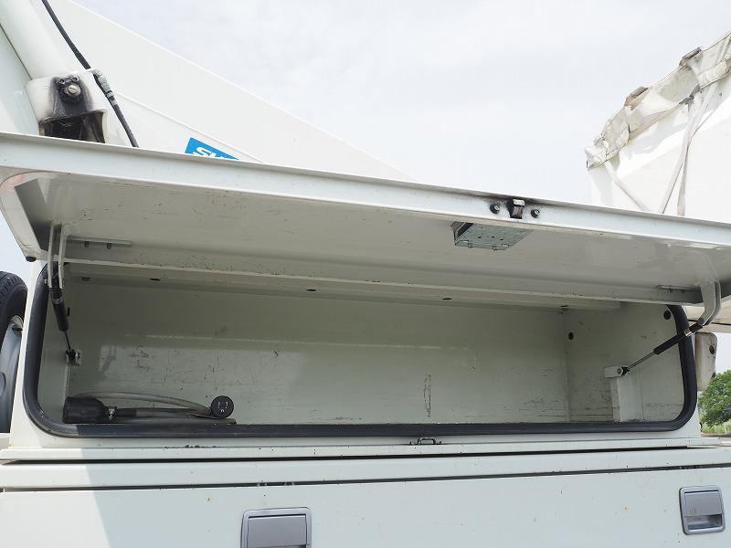 ★4WD!!パートタイム式四駆!! ★準中型免許対応(5t限定を除く) ★実走行 ★2990cc(ターボ150馬力) ★3人乗り ★ミッション 5速マニュアル ★積載400kg(抹消前) ★高所作業車 ★電気・通信工事用 ★第3ブームFRPコーティング ★上物 アイチ製 スカイマスター SH11A 作業床高さ11.0m(2015年12月製:同年) ★直下型アウトリガー外装AUS 下周りS★ブーム自動格納装置 ★FRP製バケット 積載荷重200kg ★収納箱 ★干渉防止装置 ★アースリール ★安全帯インターロック ★ニュートラル検知インターロック ★車体傾斜表示灯 ★坂道発進補助装置 ★ドライブレコーダー ★ナビ ★バックカメラ
