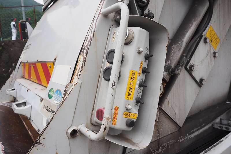 ★7540cc(ターボ220馬力) ★2人乗り ★ミッション 6速マニュアル ★積載1400kg(抹消前) ★パッカー車/塵芥車 ★上物 富士重工業製 フジマイティー プレス式 容積10.2立米 連続スイッチ付 ★坂道発進補助装置 ★バックモニター ★ETC外装AUS