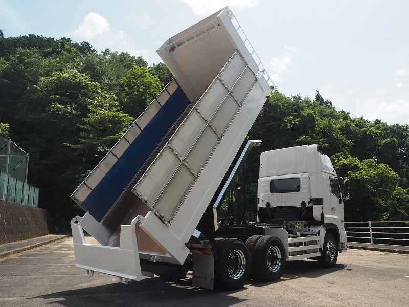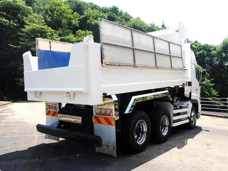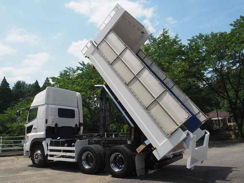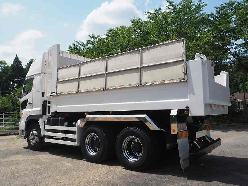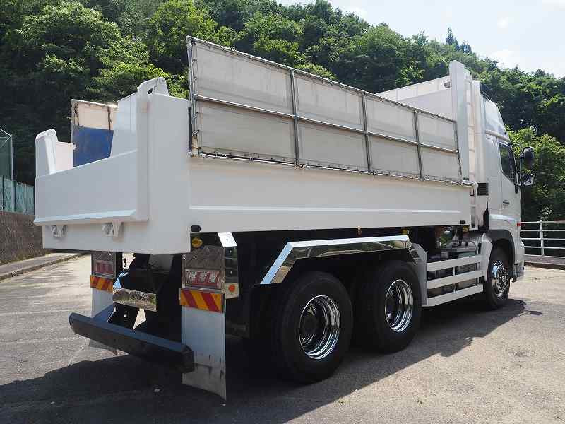 ★ハイルーフ!! ★2デフ!! ★永久磁石式リターダ!! ★E13Cエンジン!! ★車検切れナンバー付!! ★実走行 ★12910cc(ターボ410馬力) ★2人乗り ★ミッション 7速マニュアル ★ベッド付き ★積載8300kg ★大型ダンプ ★電動コボレーン ★ダム式リアゲート ★上物 新明和製 DRS11-02SC外装AU