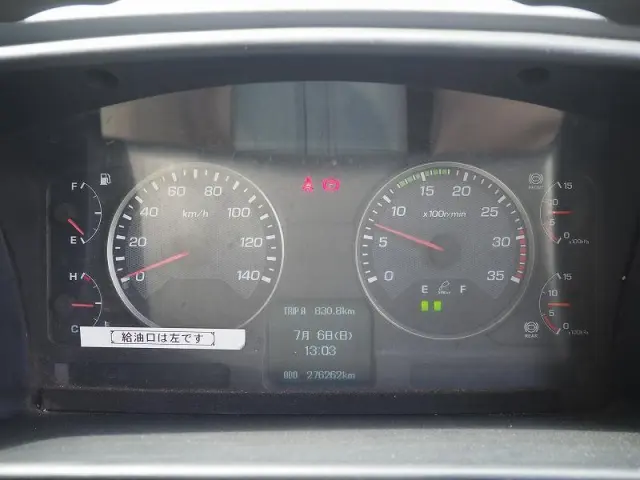 ★リーフサス ★実走行 ★7540cc(ターボ220馬力) ★2人乗り ★ミッション 6速マニュアル ★積載3600kg(抹消前) ★ワイド幅 ★6200ボディ/6.2mボディ ★平ボディ ★五方開 ★荷台内寸(約)長さ620cm×幅237cm ★床面:木板 ★内フック(丸環) ★軽々ゲート ★坂道発進補助装置外装AUS 床穴