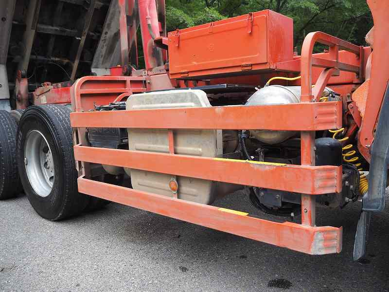 ★2デフ!! ★リーフサス ★実走行 ★9830cc(ターボ380馬力) ★2人乗り ★ミッション 7速マニュアル ★ベッド付き ★積載9100kg(抹消前) ★Lゲート/Fゲート 大型ダンプ ★電動コボレーン ★上物 新明和製 DRF11-02SC ★荷台内寸(約)長さ520cm×幅220cm ★自重計 C型S ★デフロック ★坂道発進補助装置 ★ETC外装AUS ベッセルU