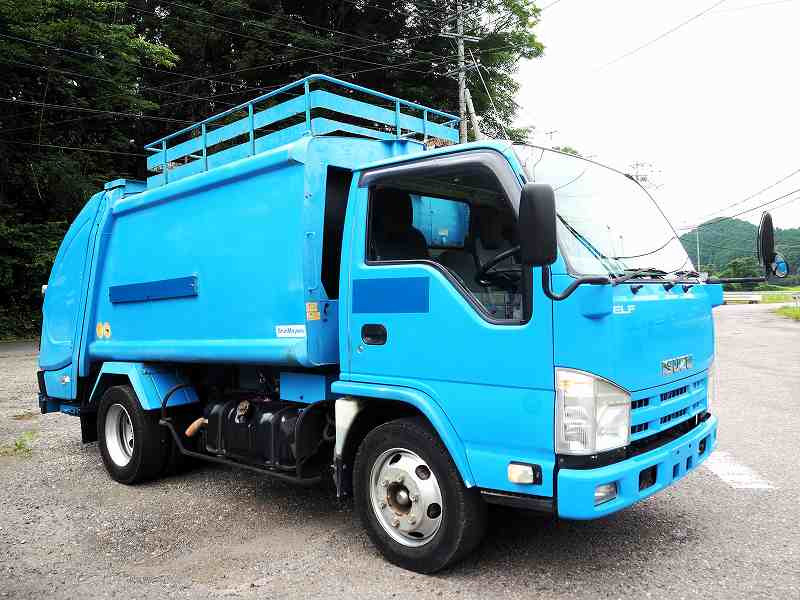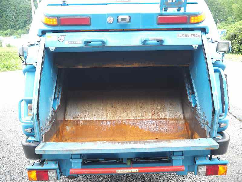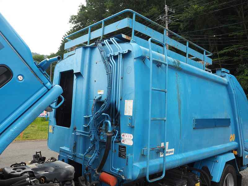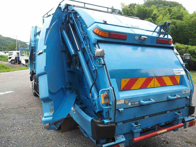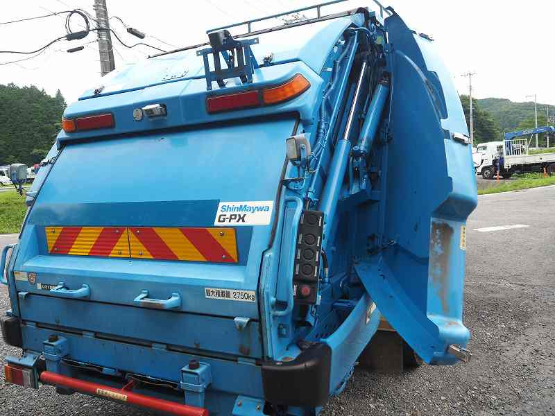 ★メーター交換歴あり(2021年10月 71,623km時:キャブ内交換ステッカー貼付) ※記録簿なし ★準中型免許対応(5t限定を除く) ★2990cc(ターボ150馬力) ★3人乗り ★ミッション 6速マニュアル ★積載2750kg(抹消前) ★パッカー車/塵芥車 ★上物 新明和製 GT054-5433N プレス式 容積5.4立米 連続スイッチ 汚水タンク付外装AUS