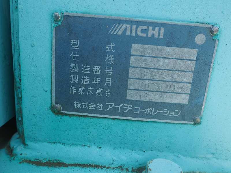 ★4000cc(ターボ) ★3人乗り ★ミッション 6速マニュアル ★高所作業車 ★上物 アイチ製 スカイマスター SJ16A 屈折アーム 作業床高さ16m(2005年1月製:同年) ★坂道発進補助装置外装AUS