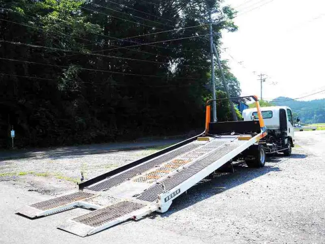 ★2990cc(ターボ150馬力) ★3人乗り ★ミッション スムーサー(2ペダル) ★積載2900kg(抹消前) ★ワイド超々ロング ★車両運搬車/車載車/キャリアカー ★セーフティーローダー ★固縛装置 ★上物 古河ユニック製 UC-28NEXRS NEOEX 車載専用車 スライドボディ ウインチ ラジコン付(2019年4月製:同年)外装AUS 下周りS