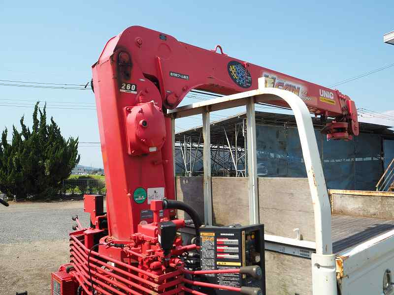 ★2990cc(ターボ150馬力) ★3人乗り ★ミッション スムーサー(2ペダル) ★標準ロング ★平ボディ ★三方開 ★上物 古河ユニック製 URU264RKK 4段クレーン フックイン 2.63t吊 ラジコン付(2017年2月製:同年) ★荷台内寸(約)長さ365cm×幅179cm ★床面:木板 ★軽々ゲート ★ロープホール ★ETC外装AUS 下周りS
