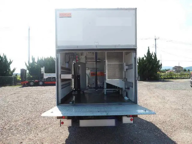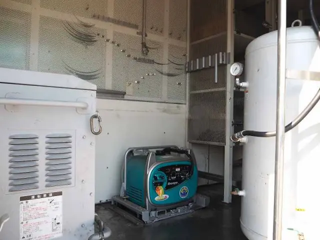 ★出張修理サービスカー ★4000cc(ターボ150馬力) ★積載500kg(抹消前) ★工作車/パネルバン ★極東開発工業製 コンビゲート(上蓋+跳ね上げ式パワーゲート) 庫内有線リモコン付 ★明治機械製作所製 ディーゼルエアコンプレッサー APET37DY140-3 ★デンヨー製 小型ガソリン発電機 GE-2000SS-IV ★上物 トランテックス製 HXDCC-1JABVQ外装AU