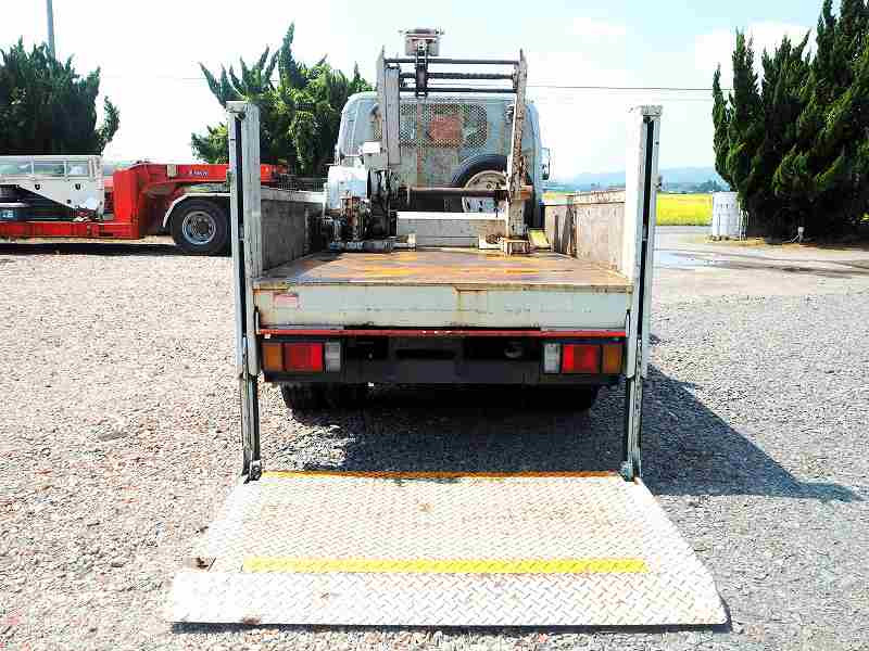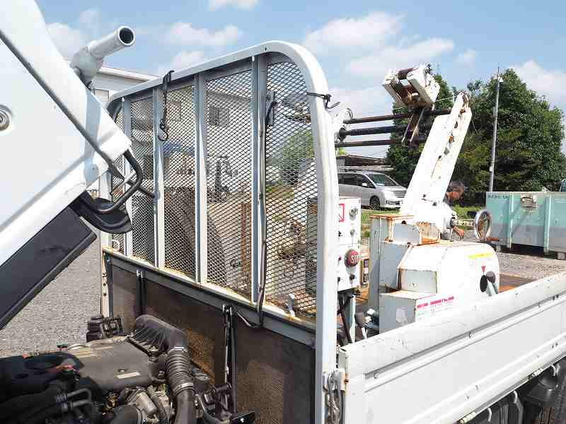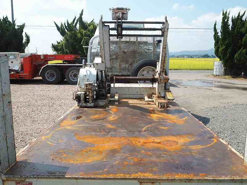 ★4WD!!パートタイム式四駆!! ★4ナンバー!! ★2990cc(ターボ150馬力) ★積載1750kg(抹消前) ★標準ショート/10尺ボディ ★平ボディ ★三方開 ★PTO付き ★極東開発工業製 V801C-1MKT2 垂直パワーゲート 昇降能力800kg ★荷台内架装物 アイチ製 TW501 巻取装置 有線リモコン(2010年6月製:同年)外装AUS
