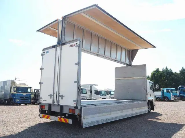 ★リアエアサス ★実走行 ★5190cc(ターボ240馬力) ★2人乗り ★ミッション 6速マニュアル ★ベッド付き ★積載2600kg(抹消前) ★ワイド幅 ★6200ボディ/6.2mボディ ★アルミウイング ★上物 日本フルハーフ製 DMS ★荷台内寸(約)長さ624cm×幅240cm×高さ245cm ★床面:鉄板 ★ラッシング2段 ★内フック(落とし込み式)外装AU