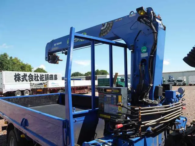 ★2990cc(ターボ150馬力) ★3人乗り ★ミッション DUONIC(2ペダル) ★積載3000kg(抹消前) ★ワイドロング ★平ボディ ★三方開 ★上物 タダノ製 ZE293HS 3段クレーン フックイン 差し違いアウトリガー 2.93t吊 ラジコン付(2018年10月製:同年) ★荷台内寸(約)長さ374cm×幅198cm ★床面:板張り(養生マット敷)外装AUS