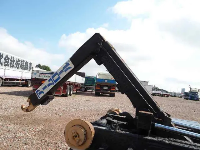 ★車検付!!令和8年8月26日迄 ★実走行 ★生エンジン ★4770cc(130馬力) ★3人乗り ★ミッション 5速マニュアル ★積載2000kg アームロール/脱着装置付コンテナ専用車 ★上物 新明和製 CCA22-12 ツインホイスト(2006年製) ★坂道発進補助装置外装AUS