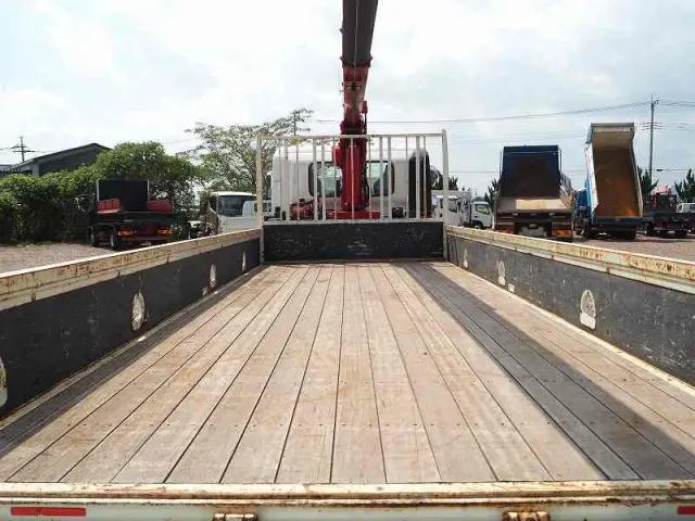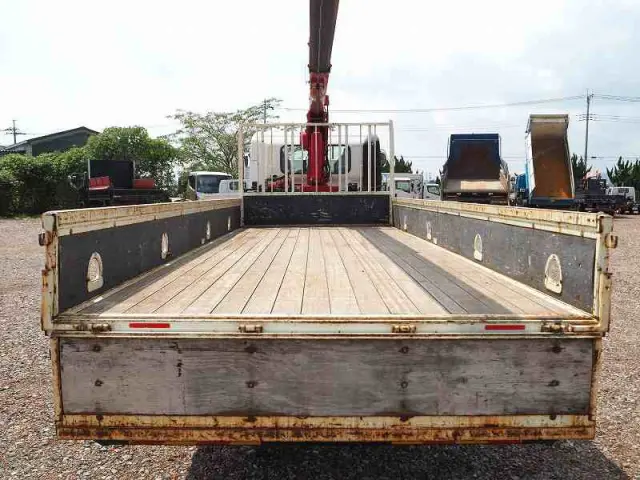 ★5120cc(ターボ) ★3人乗り ★ミッション 6速マニュアル ★積載2200kg(抹消前) ★標準幅 ★平ボディ ★三方開 ★上物 古河ユニック製 URG375NRK 5段クレーン 角足 差し違いアウトリガー 2.93t吊 ラジコン付(2017年12月) ★荷台内寸(約)長さ550cm×幅214cm ★床面:木板 ★軽々ゲート ★ロープホール ★坂道発進補助装置外装AUSC 下周りSC