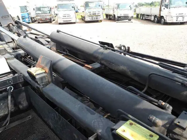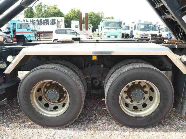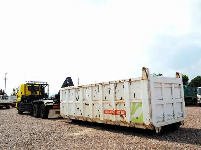★22tベース!! ★リーフサス ★実走行 ★12910cc(ターボ380馬力) ★2人乗り ★ミッション 7速マニュアル ★ベッド付き ★積載10300kg(抹消前) ★フックロール/アームロール/脱着装置付コンテナ専用車 ★上物 極東開発工業製 JM10-53 ツインホイスト ★極東開発工業製コンテナ JR10-10N 約21立米外装AUSC