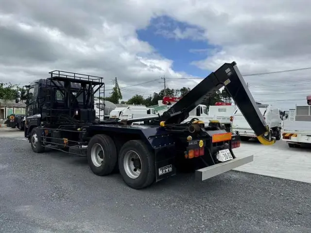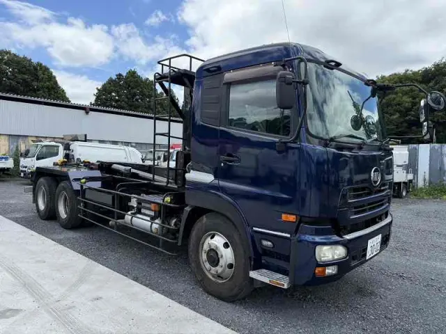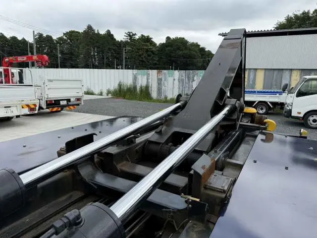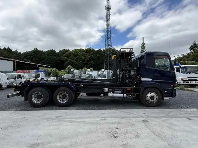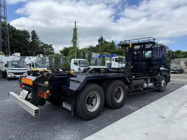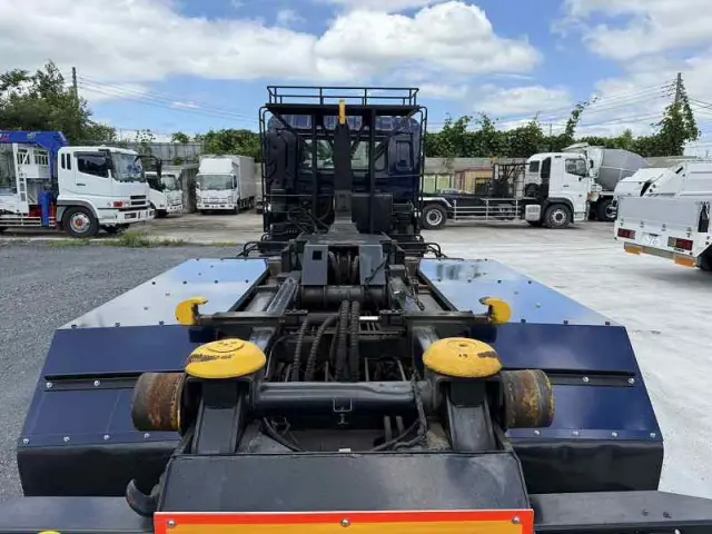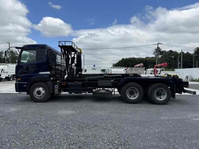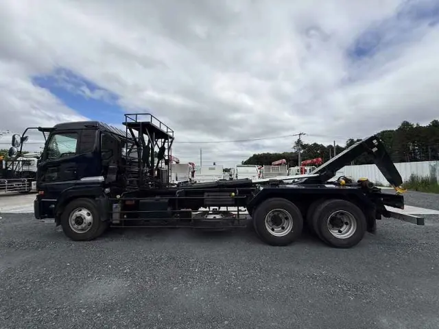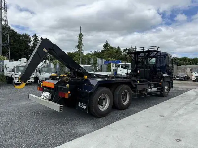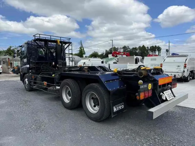 ★2デフ!! ★22tベース!! ★リーフサス ★車検付!!令和8年2月24日迄 ★実走行 ★13070cc(ターボ450馬力) ★2人乗り ★ミッション 7速マニュアル ★ベッド付き ★積載10900kg ★フックロール/アームロール/脱着装置付コンテナ専用車 ★コボレーンスイッチ付 ★上物 極東開発工業製 JM10-52X ツインホイスト/ダブルシリンダー(同年)外装AU