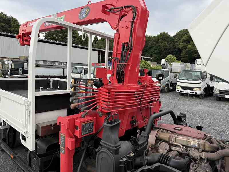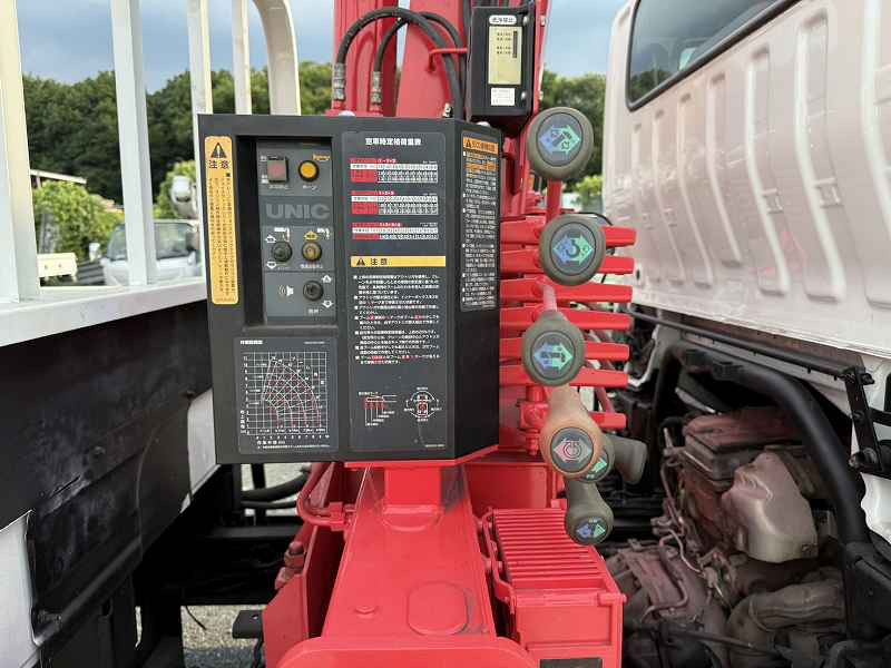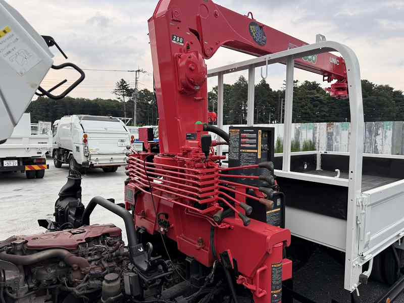 ★4WD!!パートタイム式四駆!! ★準中型免許対応(5t限定を除く) ★車検付!!令和8年7月21日迄 ★実走行 ★4000cc(ターボ150馬力) ★2人乗り ★ミッション 5速マニュアル ★積載2950kg ★ワイドロング ★平ボディ ★上物 古河ユニック製 URU294RKK 4段クレーン フックイン 差し違いアウトリガー 2.93t吊 ラジコン付外装AU