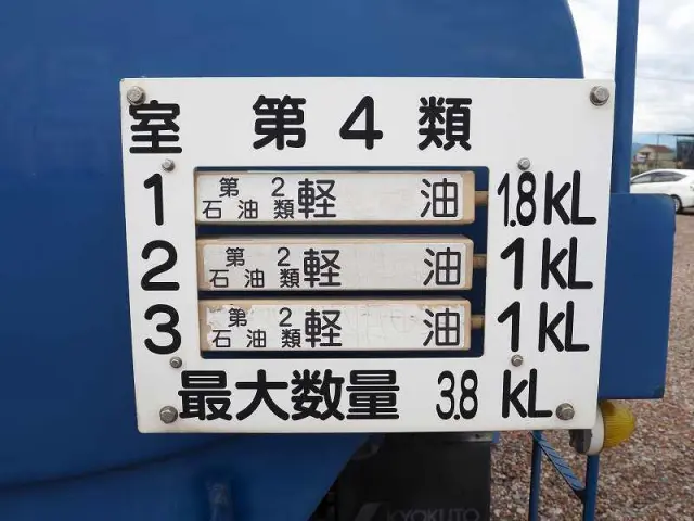 ★タンク書類完備!! ★タンク検査済証あり!! ★移動貯蔵タンク圧力検査済証 R4.4.9実施(次期点検R9.4.30迄) ★5190cc(ターボ190馬力) ★積載3030kg(抹消前) ★極東開発工業製 LS04-30 3室 タンクローリー (2012年2月製:同年) ★種別 第4類 ★品名 第2石油類 ★化学名 軽油 ★タンク最大容量 3800L ★PTO切り替え式外装AUS