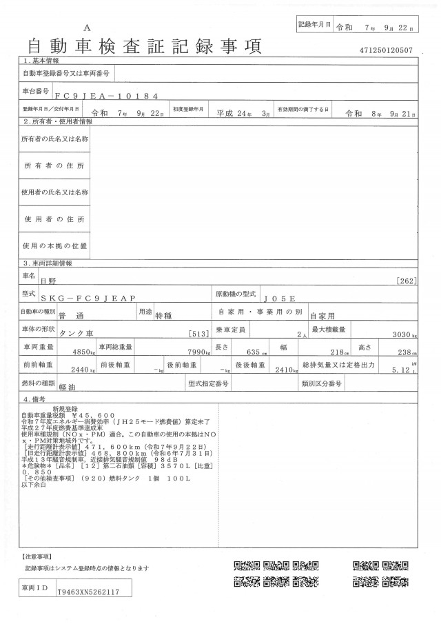 年式 | 平成24年3月 | 走行距離 | 471,628(km) |