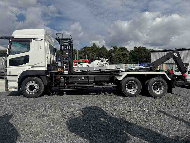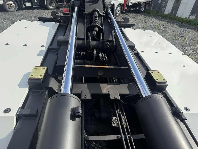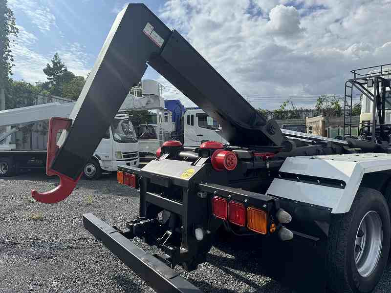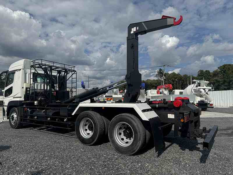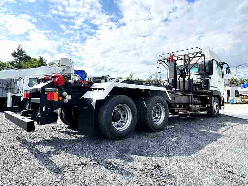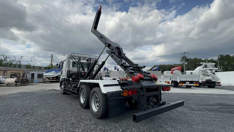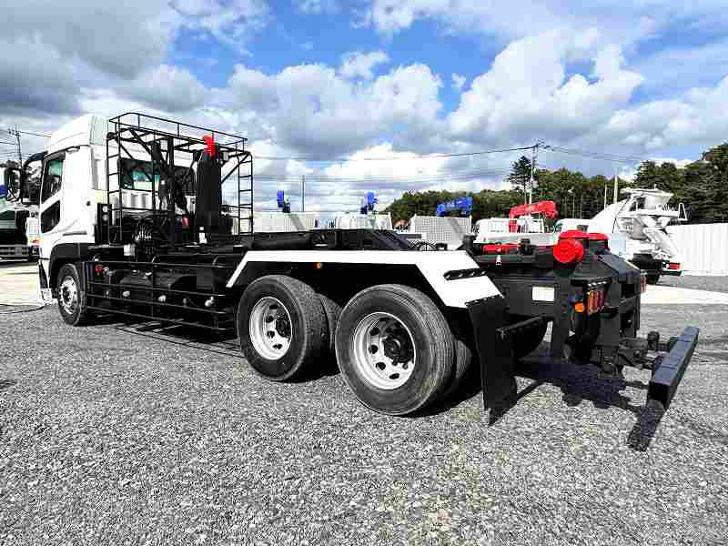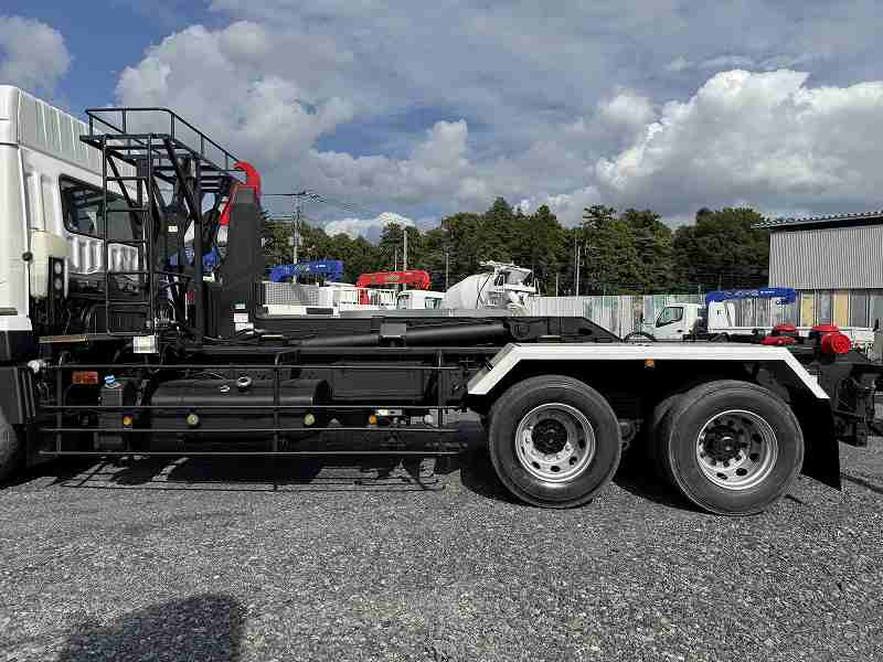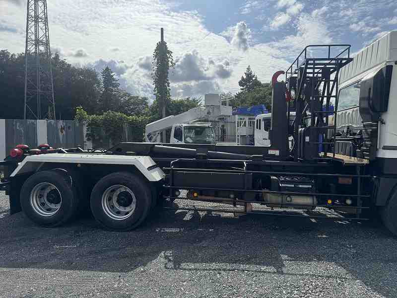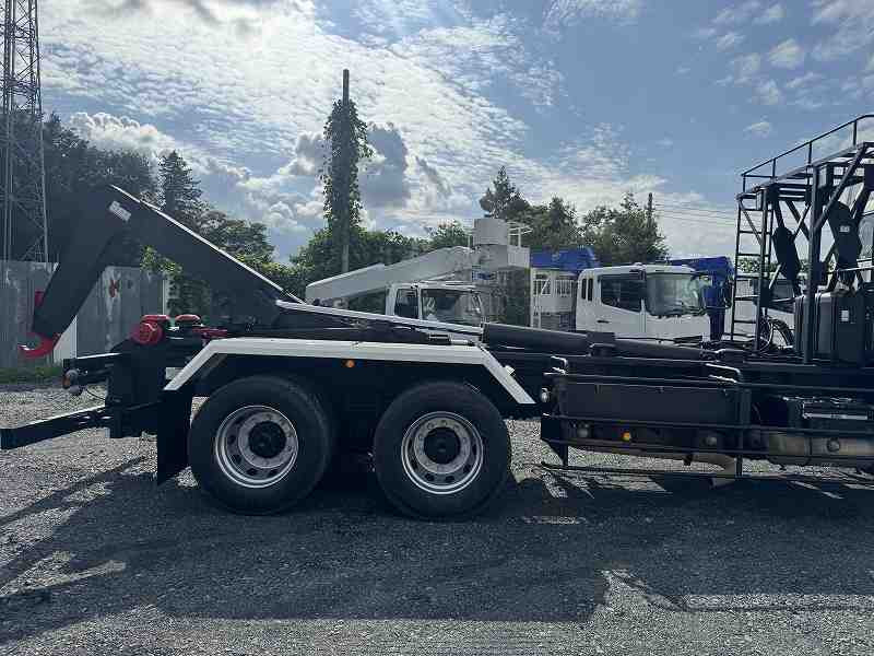 ★全塗装仕上げ済み!! ★2デフ!! ★22tベース!! ★可動式/昇降格納式リアバンパー!! ★リーフサス ★実走行 ★12800cc(ターボ) ★2人乗り ★ミッション 7速マニュアル ★ベッド付き ★積載10200kg(抹消前) ★フックロール/アームロール/脱着装置付コンテナ専用車 ★上物 極東開発工業製 JM10-53X ツインホイスト/ダブルシリンダー外装AU