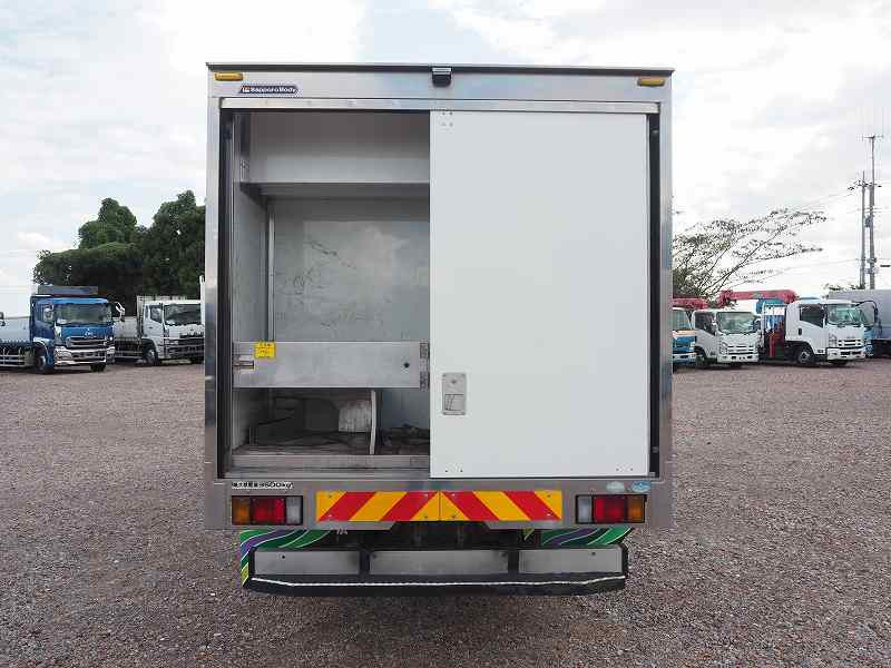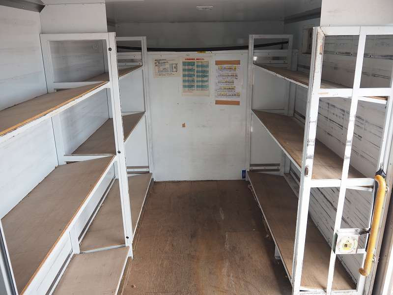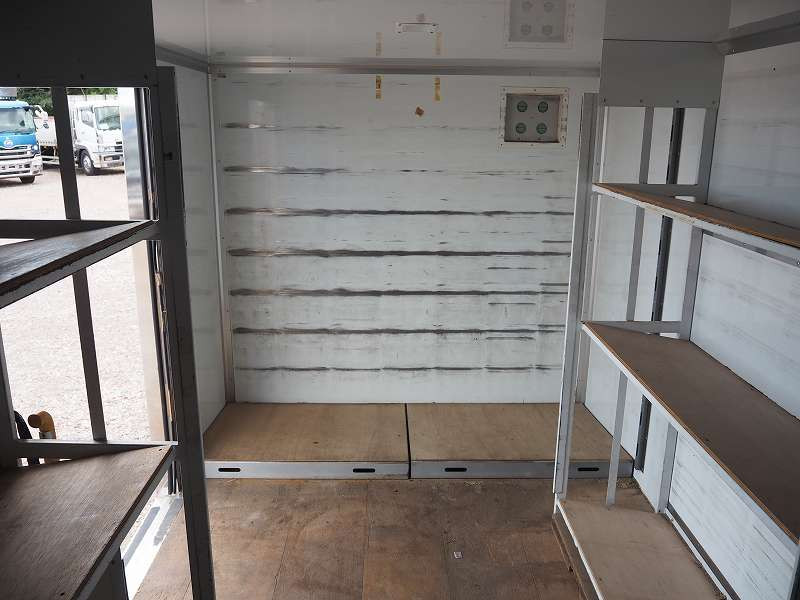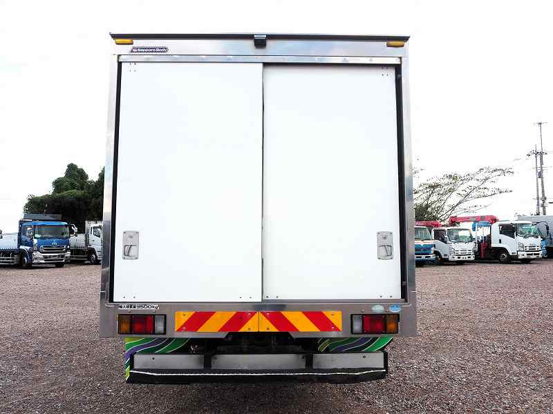 ★2990cc(ターボ150馬力) ★積載3500kg(抹消前) ★ワイド超ロング ★パネルバン/保冷バン ★2室仕様/2層式 ★門枠ステンレス造り ★左スライド式サイド扉 ★後室用水抜き穴 ★上物 札幌ボデー工業製 ★床面:木板(前室) フロアパネル(後室)外装AUS 下周りS