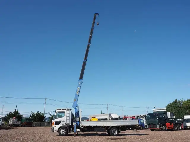★車検付!!令和8年11月5日 ★ベッド付き ★積載2000kg ★標準幅 ★平ボディ ★三方開 ★上物 タダノ製 TM-ZE365HR 5段クレーン フックイン 角足 差し違いアウトリガー 2.93t吊 ラジコン付(2015年8月製:同年) ★荷台内寸(約)長さ555cm×幅214cm ★床面:ゴムマット敷 ★アイドリングストップ ★坂道発進補助装置 ★ETC ★HID外装AU★リーフサス ★実走行 ★6400cc(ターボ240馬力) ★3人乗り ★ミッション 6速マニュアル