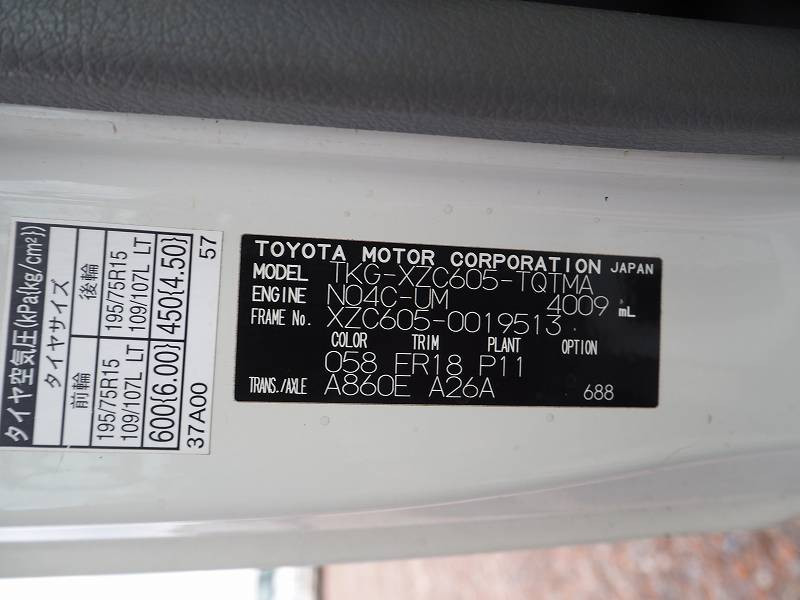 トヨタ / トヨエース / TKG-XZC605(2WD)