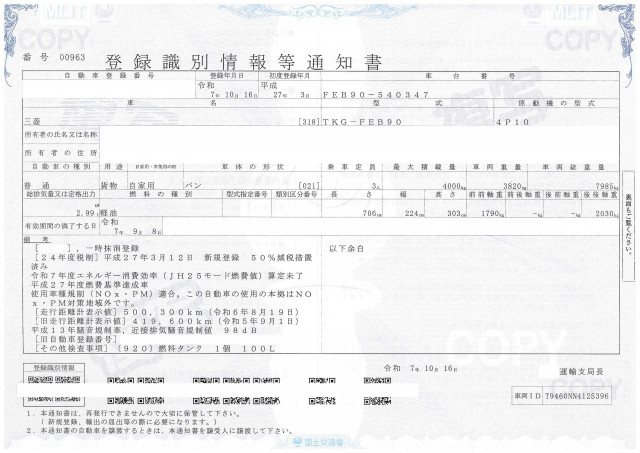 | 型式 | TKG-FEB90 | 車台番号下3桁 | 347 |