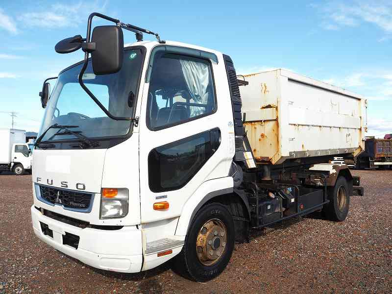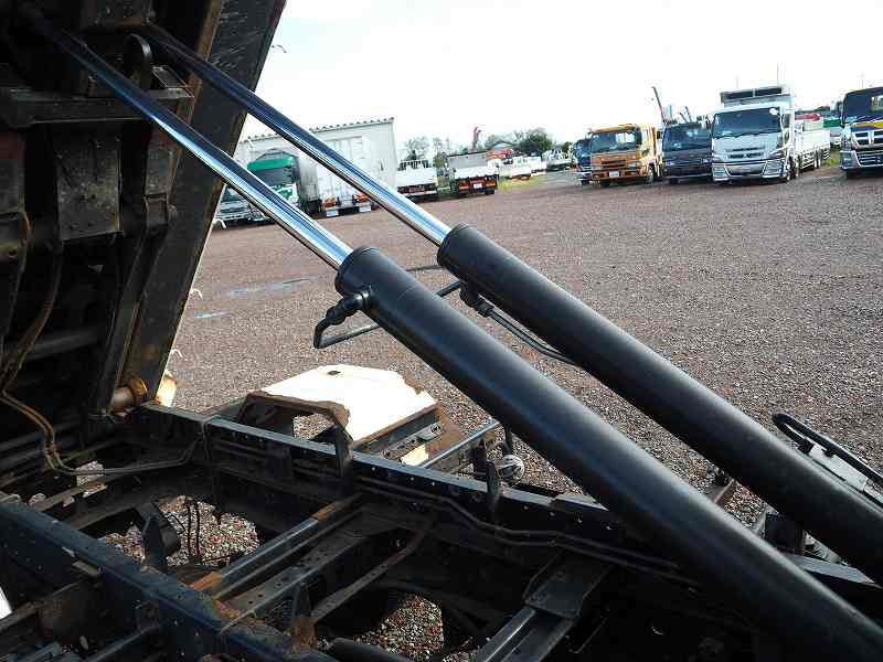 ★リーフサス ★積載3550kg(抹消前) ★フックロール/アームロール/脱着装置付コンテナ専用車 ★極東開発工業製 JR04-12N 8立米 コンテナ付(コンテナ自重840kg) ★上物 極東開発工業製 JM04-55-C ツインホイスト/ダブルシリンダー ラジコン付(同年) ★荷台内寸(約)長さ360cm×幅191cm×高さ119cm ★坂道発進補助装置外装AUS 下周りS★実走行 ★7540cc(ターボ220馬力) ★3人乗り ★ミッション 6速マニュアル