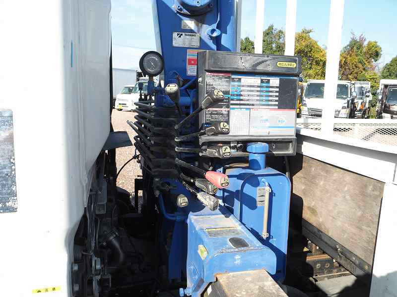 ★車検付!!令和7年12月19日迄 ★積載3000kg ★ワイドロング ★平ボディ ★三方開 ★上物 タダノ製 TM-ZE263MH 3段クレーン フックイン 2.63t吊 ラジコン付(2017年11月製:同年) ★荷台内寸(約)長さ372cm×幅211cm ★床面:板張り ★ETC外装AUS 下周りS★実走行 ★2990cc(ターボ150馬力) ★3人乗り ★ミッション 5速マニュアル