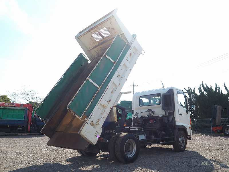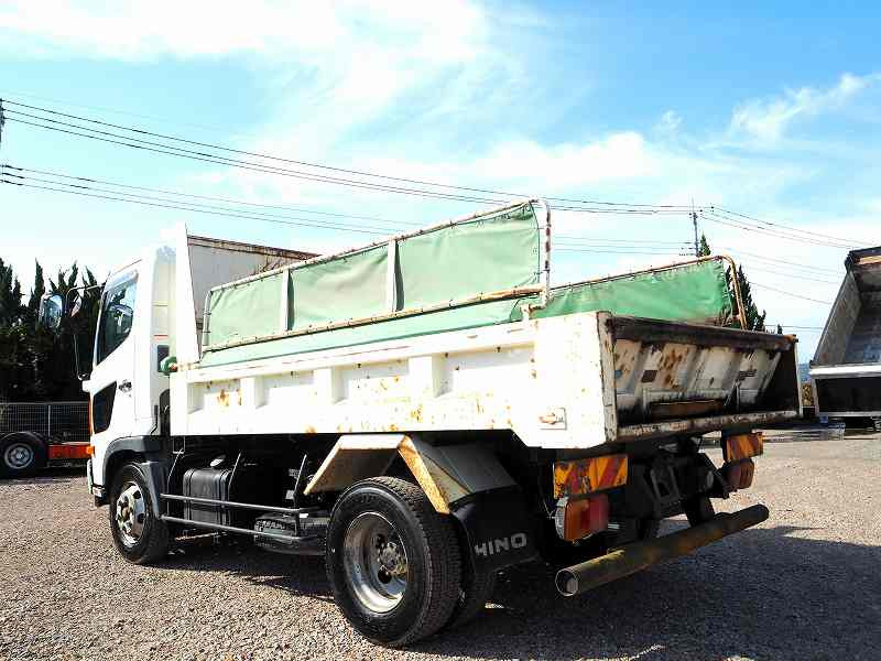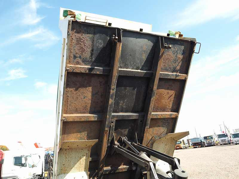 ★リーフサス ★実走行 ★5120cc(ターボ190馬力) ★3人乗り ★ミッション 6速マニュアル ★積載3500kg(抹消前) ★Lゲート/Fゲート 中型ダンプ ★電動コボレーン ★上物 極東開発工業製 DD04-53A ★荷台内寸(約)長さ340cm×幅200cm ★ETC外装AUS