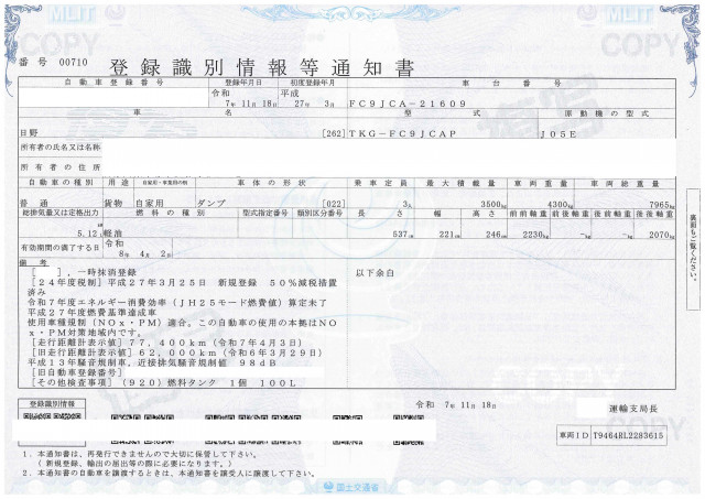 | 型式 | TKG-FC9JCAP | 車台番号下3桁 | 609 |