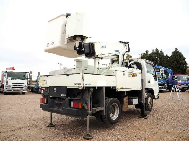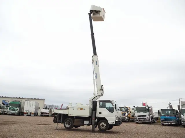 ★4WD!!パートタイム式四駆!! ★準中型免許対応(5t限定を除く) ★高所作業車 ★アワメーター 5554hr(点検のため若干変動ございます) ★上物 アイチ製 SB10A 作業床高さ9.7m (2017年10月製:同年) ★直下型アウトリガー ★旋回自動停止 ★FRP製バケット 荷重200kg ★収納箱 ★干渉防止装置 ★アースリール ★ニュートラル検知インターロック外装AUS★実走行 ★2990cc(ターボ150馬力) ★3人乗り ★ミッション 5速マニュアル ★積載500kg(抹消前) ★車体傾斜表示灯 ★坂道発進補助装置 ★ナビ ★バックカメラ