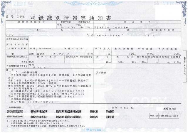 | 型式 | TRG-NJS85A | 車台番号下3桁 | 430 |