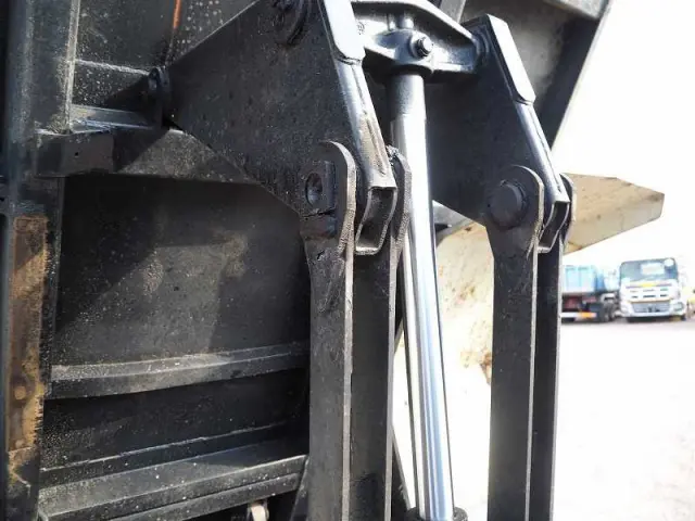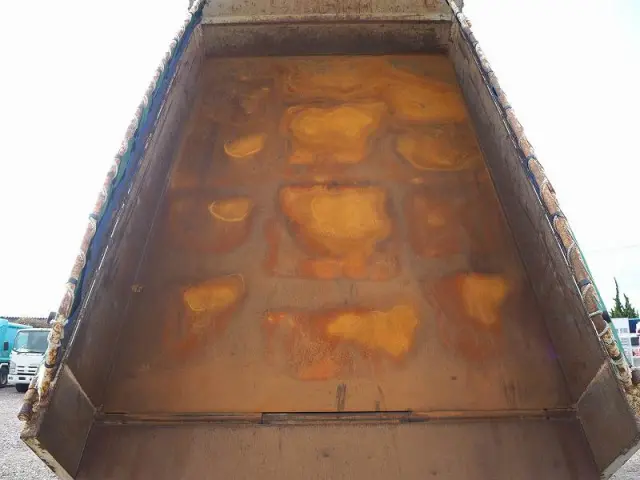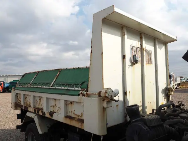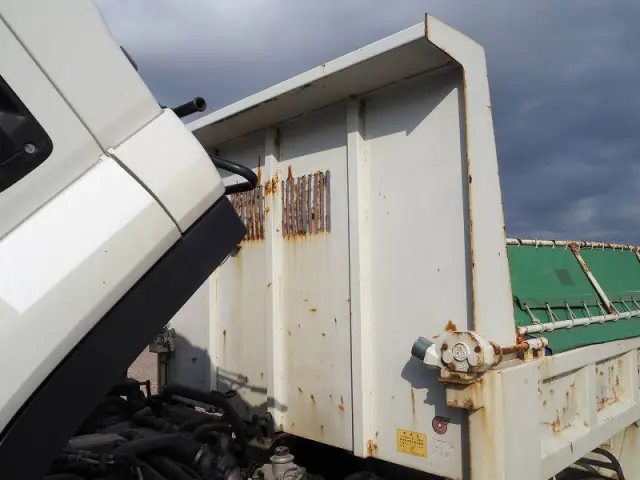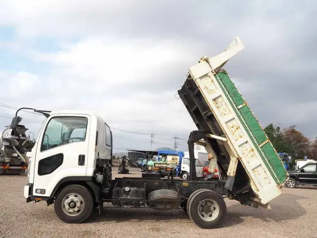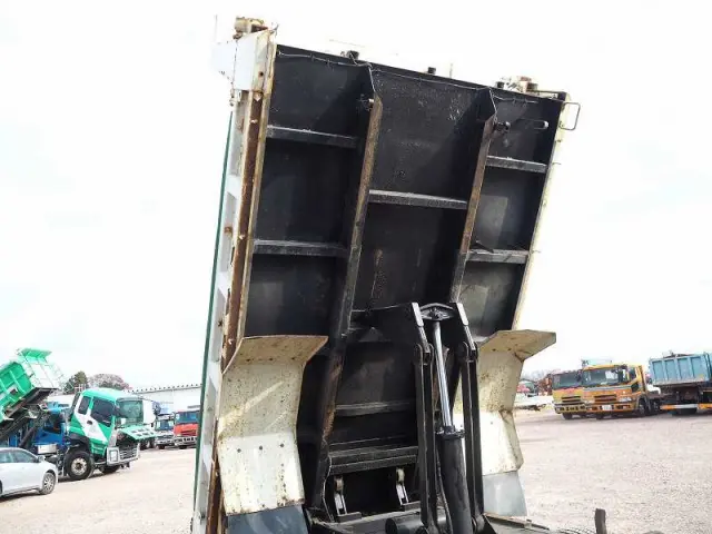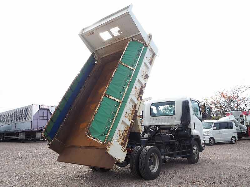 ★リーフサス ★実走行 ★5190cc(ターボ190馬力) ★3人乗り ★ミッション 6速マニュアル ★積載3450kg(抹消前) ★Lゲート/Fゲート 中型ダンプ ★電動コボレーン ★上物 新明和製 DRF4-17SY ★荷台内寸(約)長さ340cm×幅201cm ★坂道発進補助装置外装AUS 下周りS