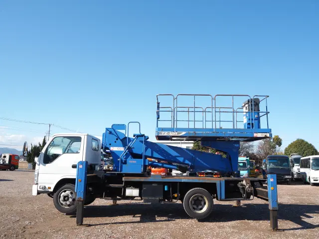 ★2990cc(ターボ) ★3人乗り ★ミッション 6速マニュアル ★高所作業車 ★アワメーター4817hr(点検のため若干の変動がございます) ★上物 アイチ製 スーパーデッキ TZ12A 旋回デッキ型 ★自動格納装置 ★デッキ垂直・水平移動 ★デッキ水平調整 ★デッキ積載荷重 1000kg ★坂道発進補助装置 ★ETC外装AUS 下周りSC