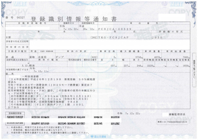| 型式 | TKG-FC9JCAP | 車台番号下3桁 | 529 |