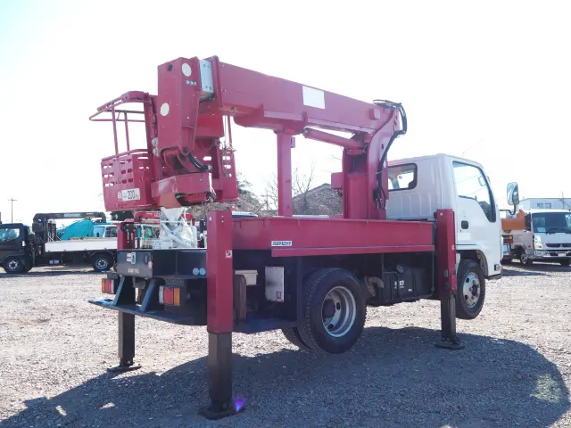 ★実走行 ★3000cc(ターボ) ★3人乗り ★ミッション 5速マニュアル ★積載150kg(抹消前) ★高所作業車 ★アワメーター 4526hr(点検のため、若干変動がある場合がございます) ★上物 アイチ製 スカイマスター SB12A 作業床最大地上高12.0m(2014年製:同年) ★ブーム自動格納装置 ★直下型アウトリガー ★バケット積載荷重 200kg外装AUS★100V電源 ★坂道発進補助装置