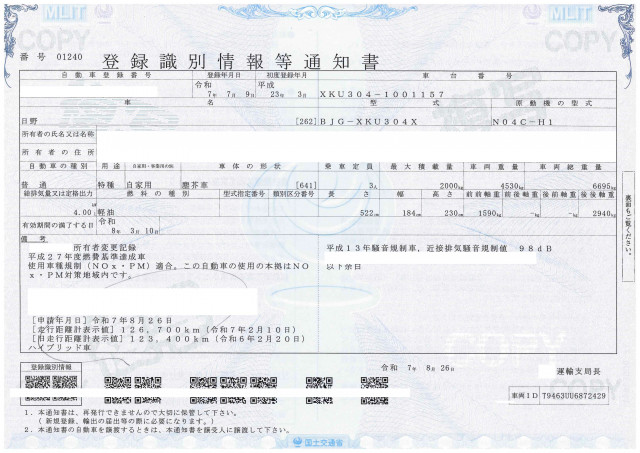 | 型式 | BJG-XKU304X | 車台番号下3桁 | 157 |