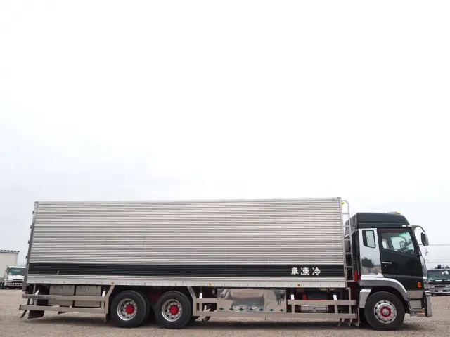 ★カスタムグレード(本革シート・専用インテリア) ★車検付き令和8年6月迄 ★3軸高床 ★2デフ ★リーフサス ★ハイルーフ ★12800cc(ターボ420馬力) ★2人乗り ★ミッション 7速マニュアル ★ベッド付き ★積載9300kg ★冷蔵冷凍車/冷凍バン ★左観音式サイド扉 ★上物 日本トレクス製コルゲート サイド観音 冷凍バン ステンレスパーツ多数!!外装AUS 下周りSC★上物冷凍機 サーモキング製 低温仕様サブエンジン式 -29℃設定 ★荷台内寸(約)長さ934cm×幅232cm×高さ222cm ★T型キーストン ★ラッシング ★庫内水抜き穴 ★ステンレス燃料タンク×2 ★デフロック ★坂道発進補助装置 ★バックモニター ★ETC ★キセノンヘッドライト ★総輪アルミホイール