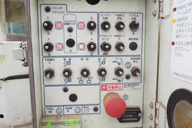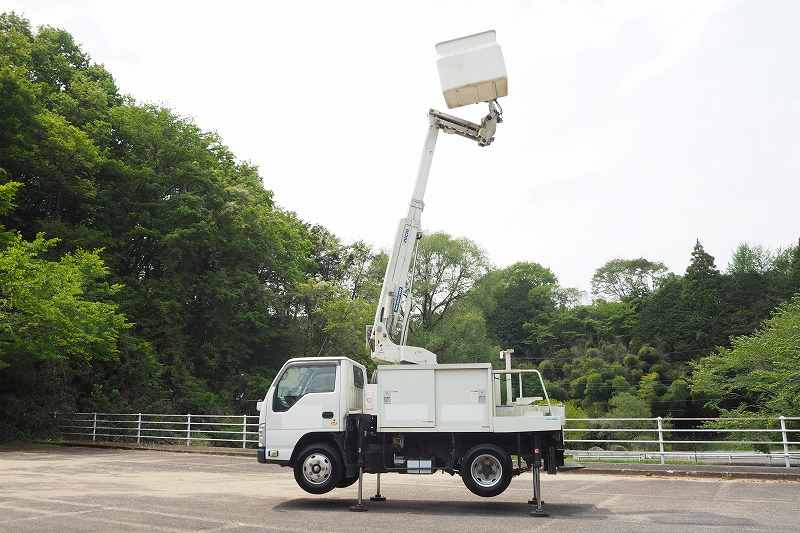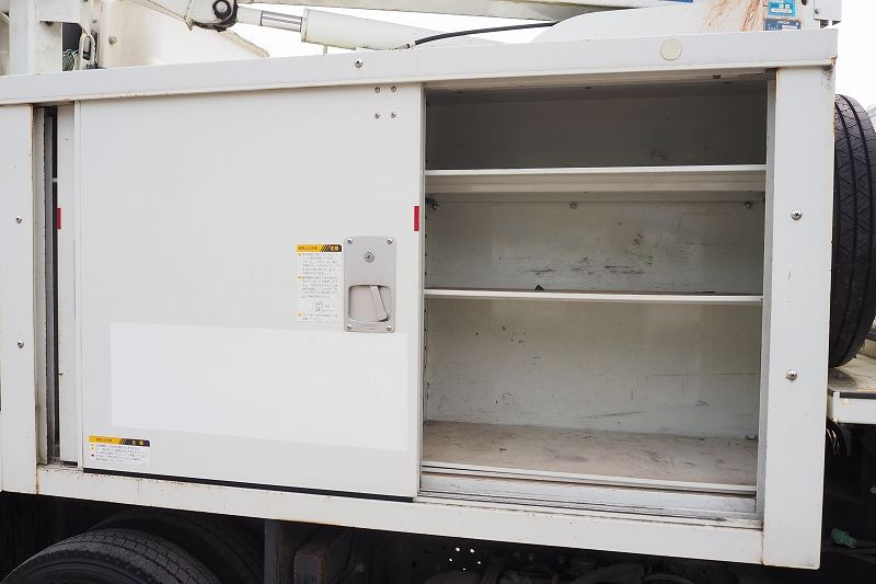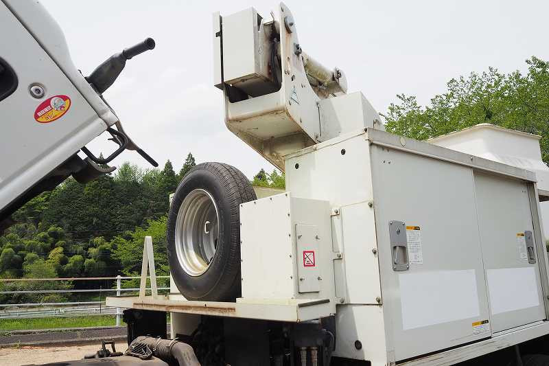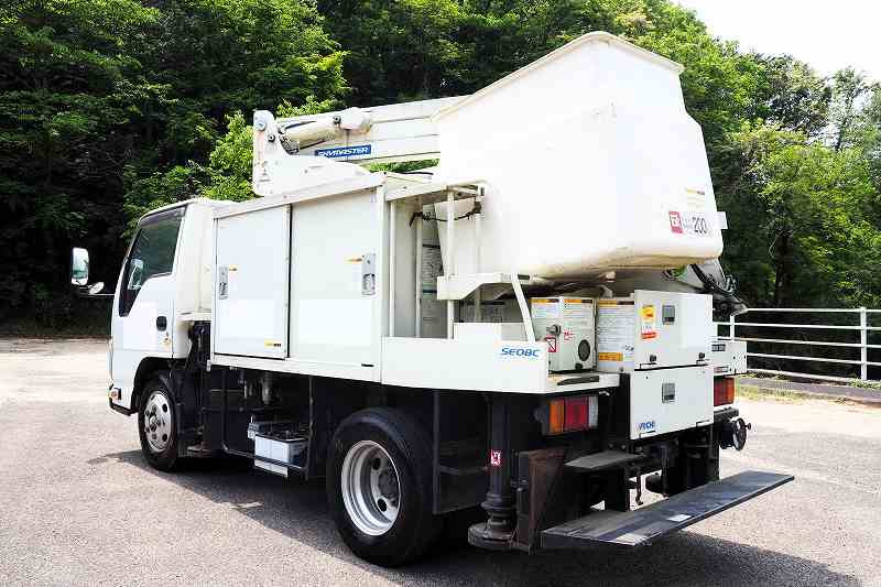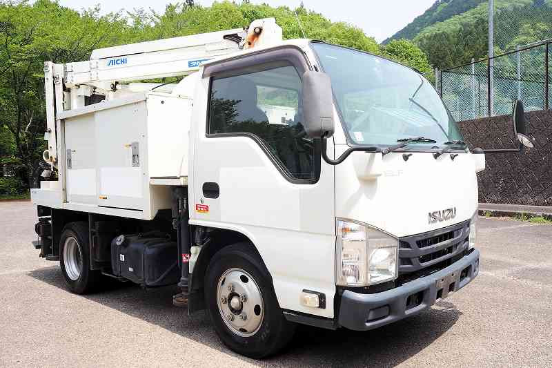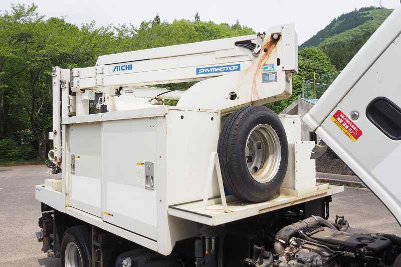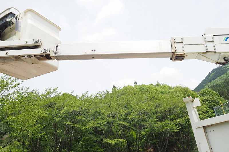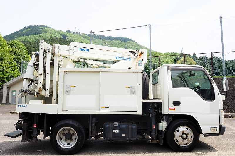 ★2990cc(ターボ150馬力) ★3人乗り ★ミッション スムーサー(2ペダル) ★積載500kg(抹消前) ★高所作業車 ★アワメーター 1886hr(点検のため若干変動ございます) ★上物 アイチ製 SE08C 作業床高さ8m 通信仕様(2016年3月製:同年) ★直下型アウトリガー(敷板4枚) ★先端屈折アーム ★FRP製バケット 荷重200kg ★収納箱外装AUS★旋回自動停止装置 ★干渉防止装置 ★ニュートラル検知インターロック装置 ★車体傾斜表示灯 ★アースリール ★ナビ