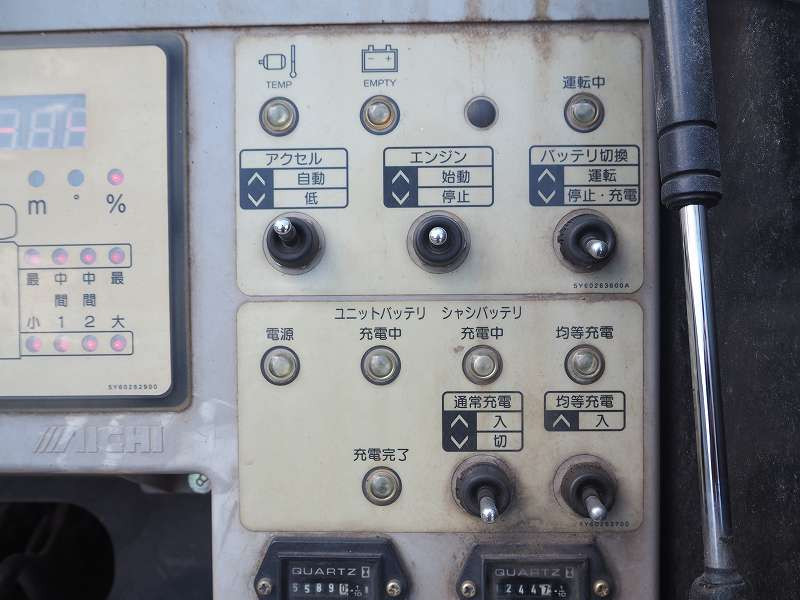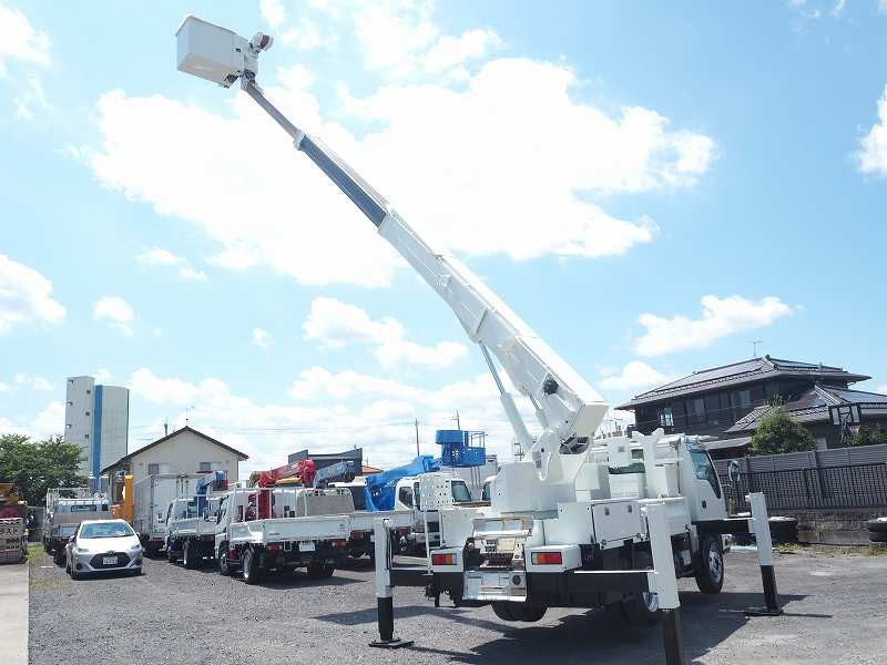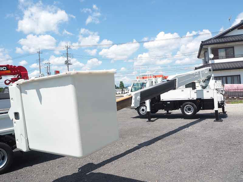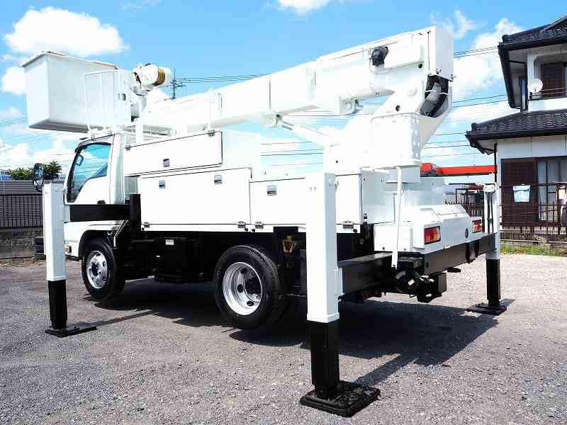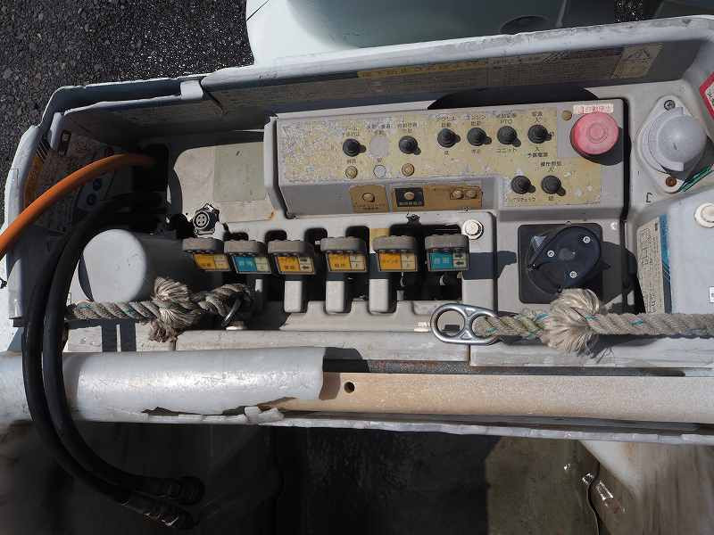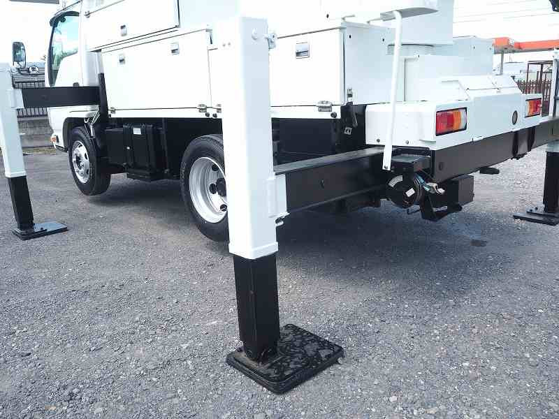 ★2990cc(ターボ) ★3人乗り ★ミッション 6速マニュアル ★積載500kg(抹消前) ★高所作業車 ★電工仕様/活線作業車 ★第3ブームFRP製(絶縁仕様) ★サブバッテリー式(充電ケーブル接続口:ケーブル欠品のため動作未確認) ★トータルアワメーター 5585hr(点検のため若干変動ございます) ★ユニットアワメーター 1244hr(点検のため若干変動ございます)外装AU★上物 アイチ製 SH15B 作業床高さ14.6m 電工仕様(2009年8月製:同年) ★自動格納機能 ★バケット昇降式 ★油圧取出ブースターアタッチメント ★油圧式ウインチ ★FRP製バケット 荷重200kg ★収納箱 ★アースリール ★坂道発進補助装置